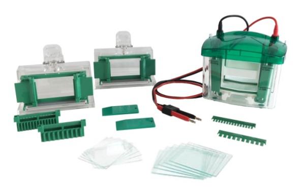 ? 制膠架: 分體設計,操作方便,能同時看到正在灌制的兩塊凝膠,具有彈簧杠桿設計,膠墊密封性良好,同時可灌兩塊膠。
